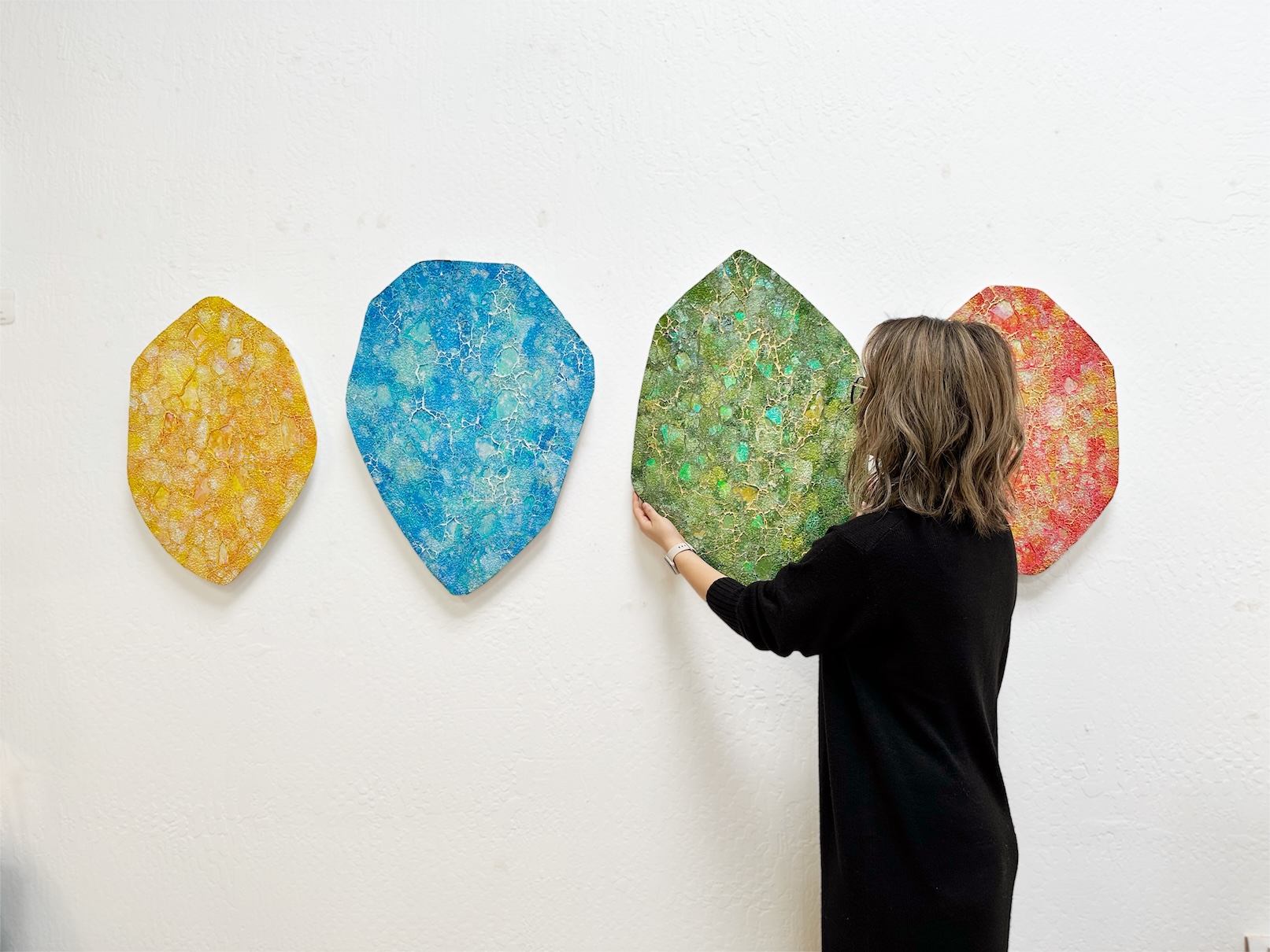 Constantly exploring the interplay of light and color, Chieko Shimizu, a glass mosaic artist, endeavors to create pieces that capture the intricate beauty and complexity of the natural world. Growing up in Japan, Shimizu has acquired a profound admiration for the transitional seasonal colors, along with the culture where such elements are carefully incorporated into daily life with a sense of gratitude.