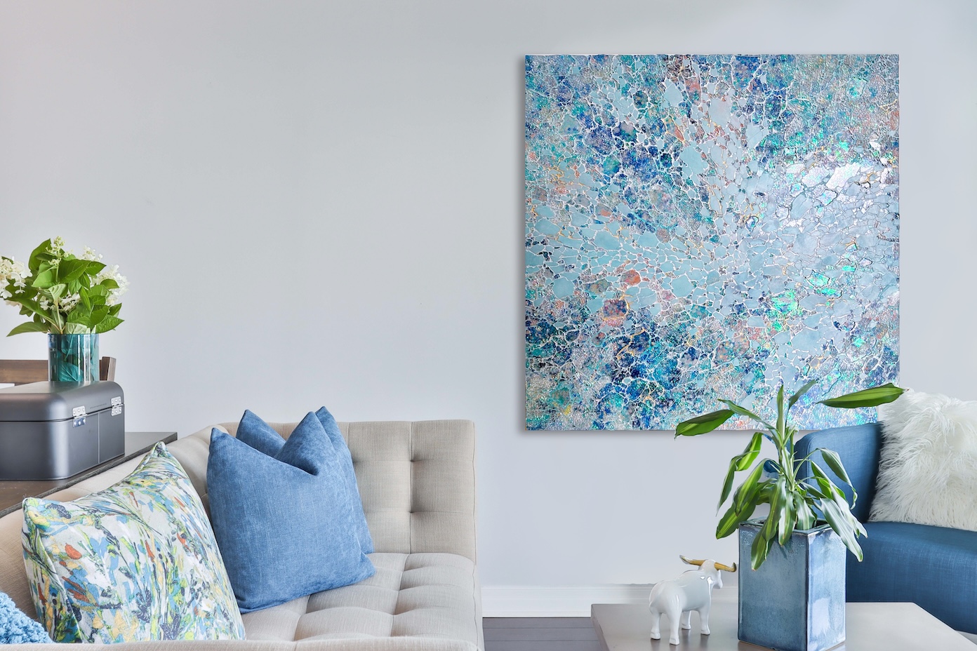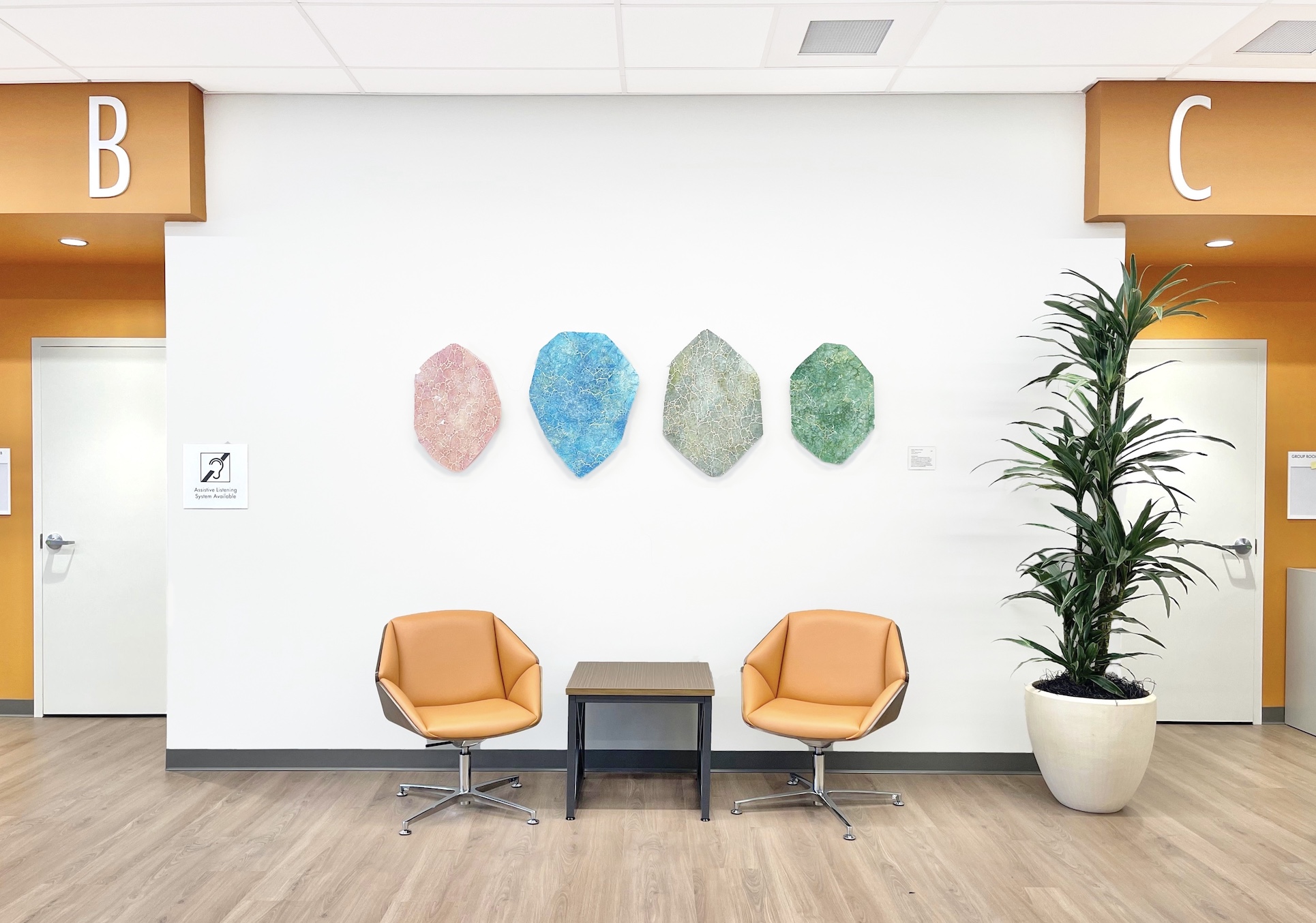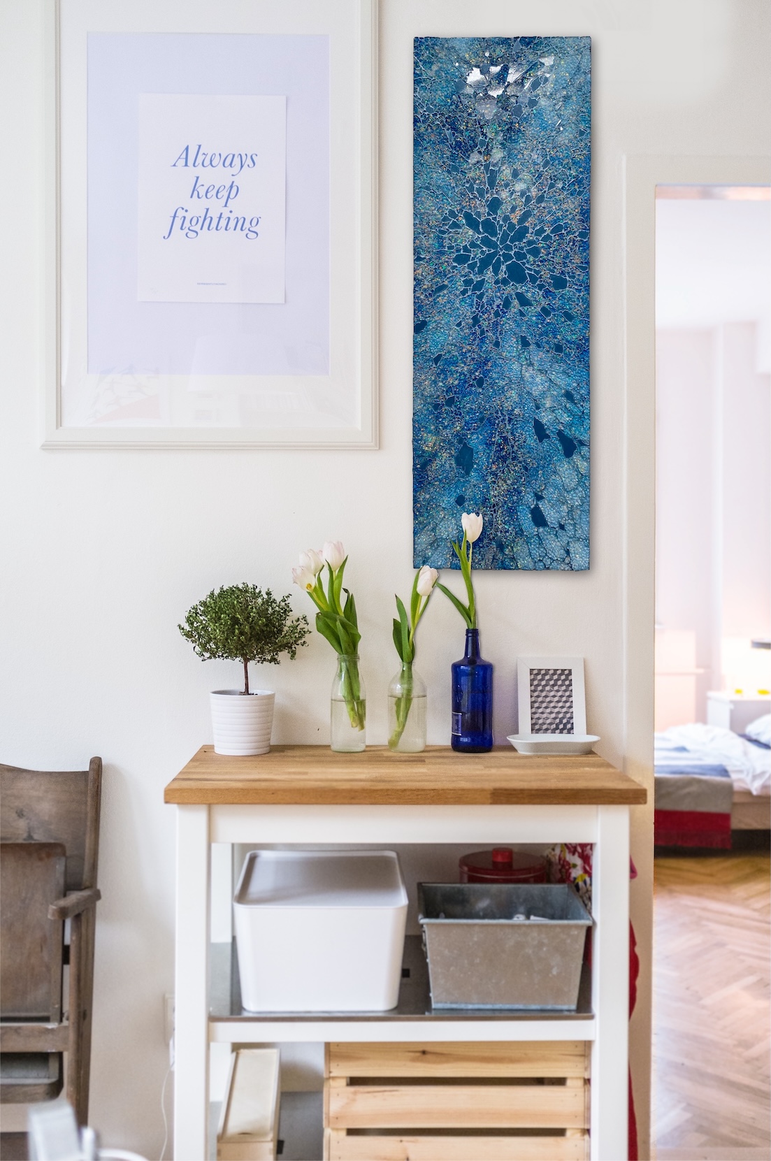 Glass mosaic art is an exceptional form of artistic expression that melds elements of both abstract painting and traditional mosaic art. By meticulously layering diverse colors then preserving them underneath shattered glass, Shimizu is capable of depicting the transience and evanescent nature of light, resulting in artworks that are both aesthetically pleasing and deeply calming. Whether Shimizu is creating a large installation or a more intimate piece, she consistently strives to stretch the limits of what is possible with this unique and challenging medium.